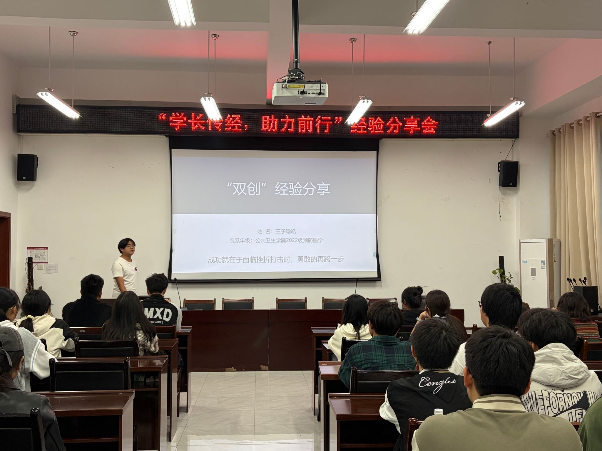 为激活学生思路,培育创新精神,10月25日晚,365英国上市公司创新创业部在仁济楼319举办“学长传经,助力前行”经验分享会。分享会特邀22级预防医学王子瑜皓学长参与分享,学院同学积极参加。