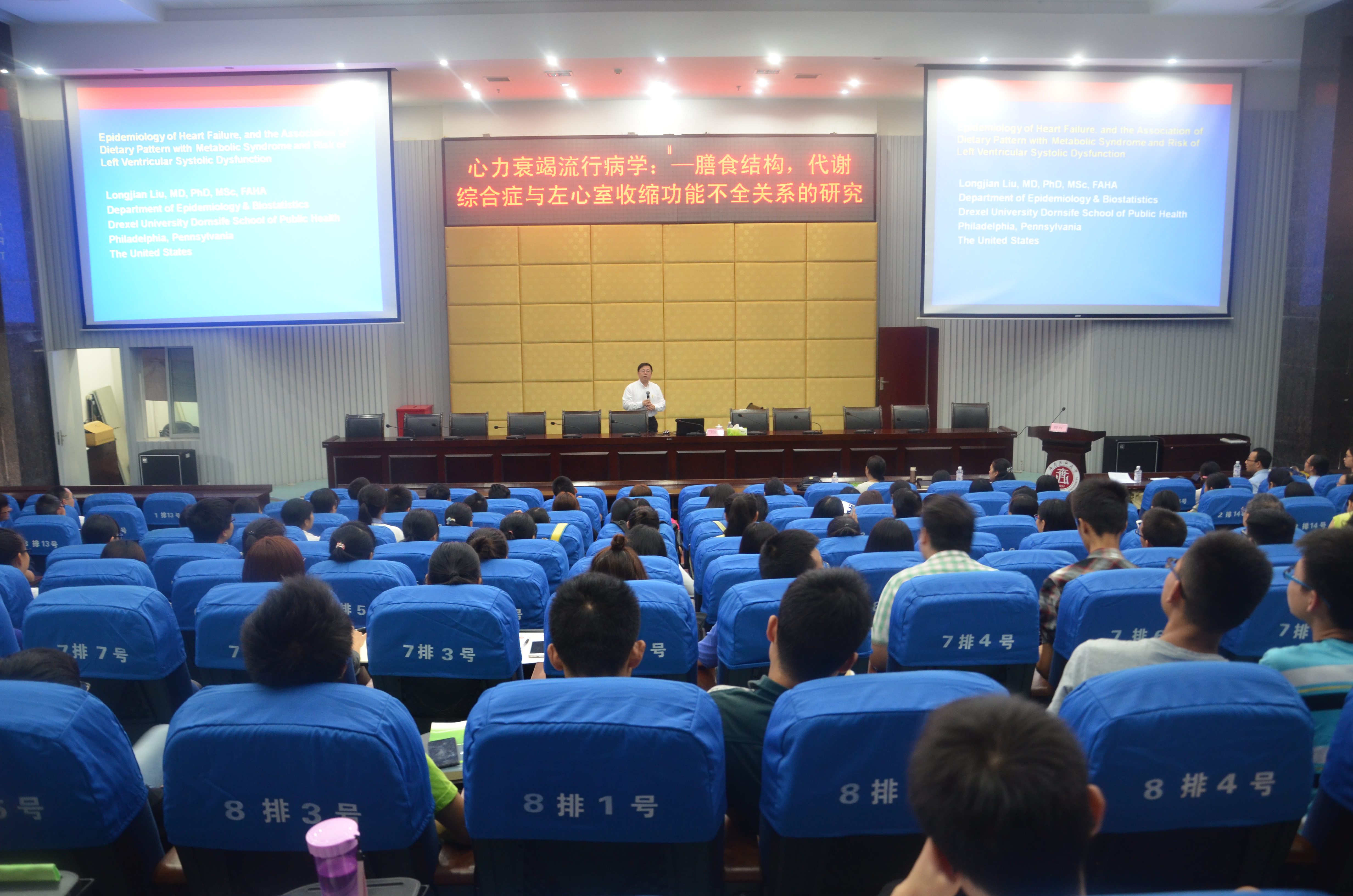 讲座中,刘教授用精深的专业知识从心力衰竭流行病学、膳食与代谢综合征关系的研究、代谢综合征与左心室功能不全关系的研究、生物统计分析方法及科研课题研究方向等方面做了深入详实地讲解和全面的解读。报告气氛活跃,刘教授还对部分老师和学生提出的有关膳食营养与代谢综合征、心力衰竭关系、统计分析方法等方面进行了互动和解答。