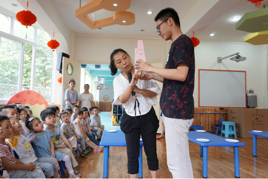 此次活动邀请了人民南路幼儿园中二班和大三班的小朋友参加。活动中,首先让小朋友们观看营养小视频,随后通过让他们对纸上的食物进行涂色、问题抢答等环节的互动,365英国上市公司杨艳老师给他们讲解膳食分类、食物名称及相关作用等的相关知识。