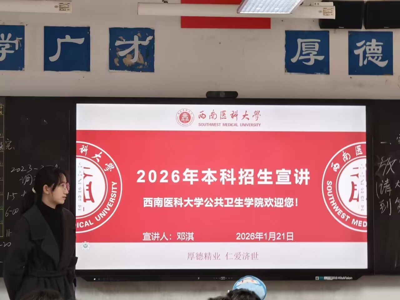 2026年1月21日,公司2025级预防医学专业学生、招生宣传大使邓淇重返母校四川省金堂中学校,为班级学子带来一场生动的招生宣讲。