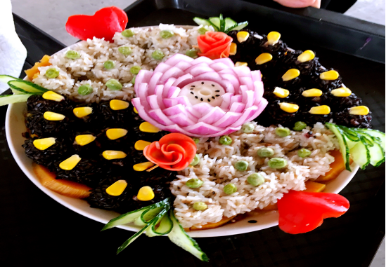 最后,大赛评委通过对菜品色泽外观、口感味道、特色创意及健康营养等方面的综合评定,分别评选出一等奖2名(内有乾坤、紫薯船)、二等奖4名(脆麦杯豆乳、金玉满堂、黄金杂粮海参煲、杂粮寿司)、三等奖8名(酸菜炒红豆、木耳炒山药、五彩珍珠丸子、五彩菠萝饭、肉沫豆腐、侠义心肠、大丰收、五彩虾仁、什锦糖醋虾仁、玉米鸡丁)。参赛作品均体现了“谷物入菜肴,营养+健康”这一主题。