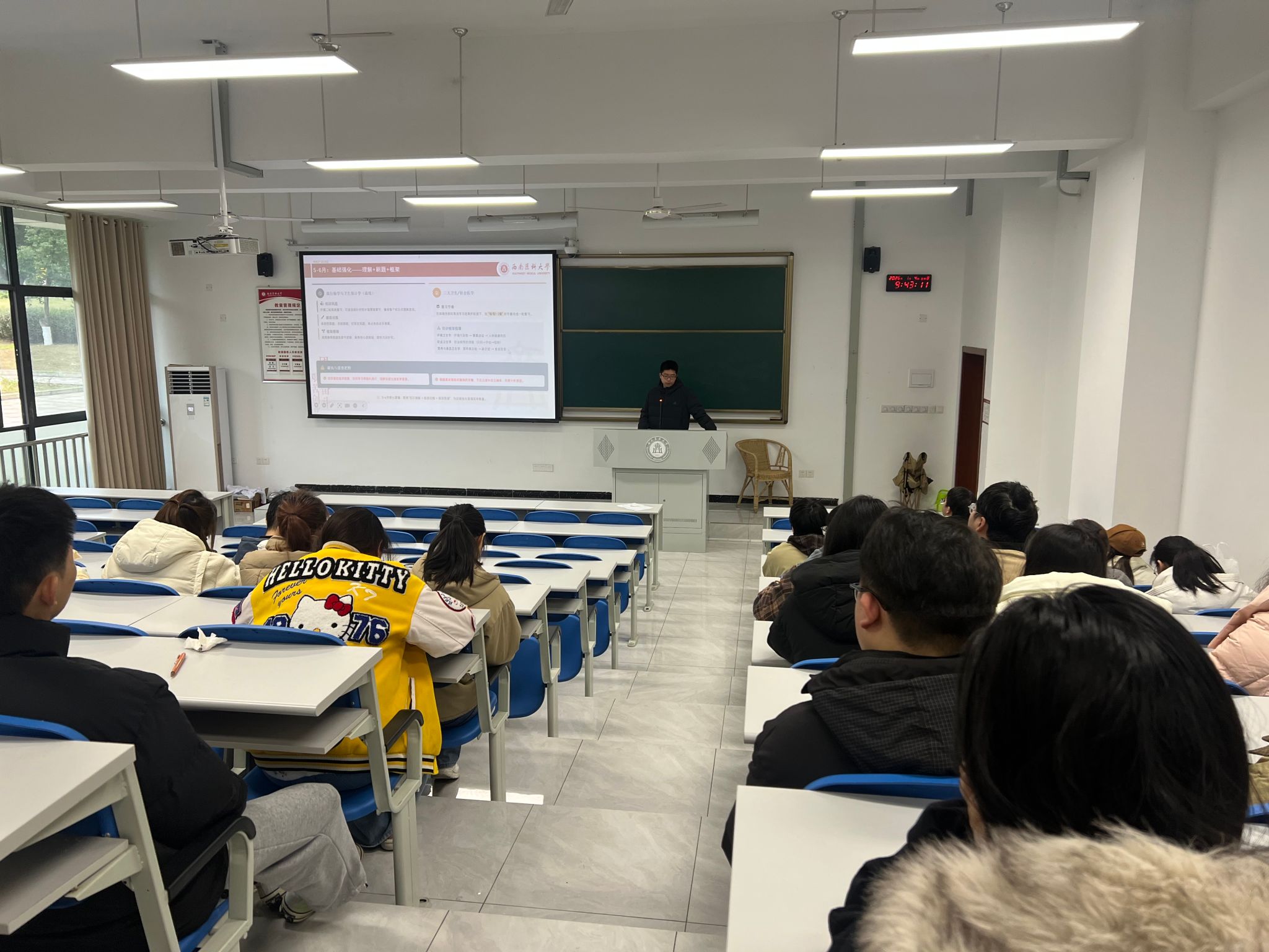 随后,受邀的优秀研究生代表结合自身复试实战经历,倾囊相授。他们围绕专业课复习重点,分享了流行病学、卫生统计学等核心学科的备考方法,结合复试高频考题给出针对性建议;针对英语听说测试,推荐了实用练习技巧与高频表达句式;在综合面试环节,详解了自我介绍打磨、科研思维展示、临场应变技巧等关键要点,同时分享了调剂信息搜集、志愿填报等实用经验。