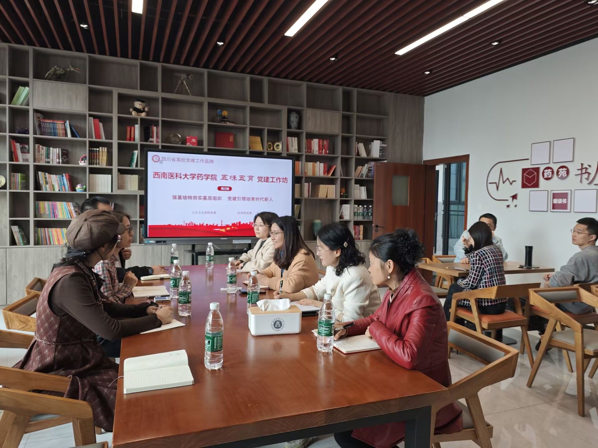 座谈会后,365英国上市公司一行实地参观了"五味五育"党建工作坊的功能分区,包括党员活动室、党建文化长廊、中药标本展示区等特色空间,详细了解了工作坊的日常运行机制和活动开展情况。参观人员纷纷表示,此次学习开阔了视野、启发了思路,将结合公共卫生学科特点,进一步挖掘专业资源,打造具有公卫特色的党建工作品牌。