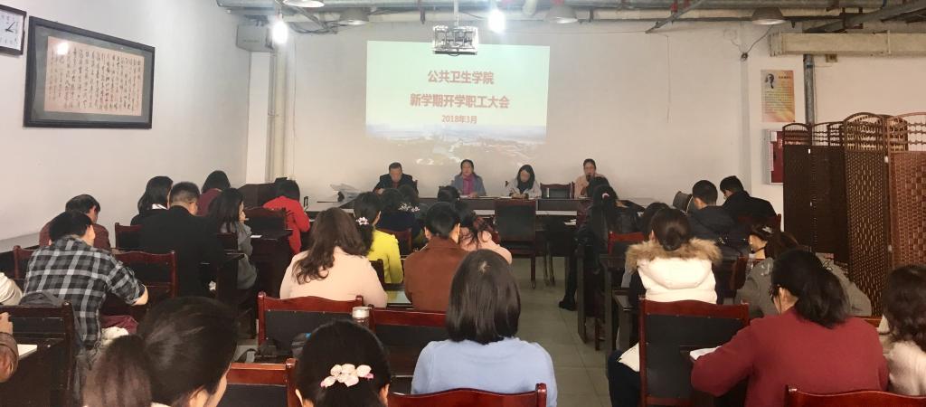 会上,党总支副书记李星对近期研究生培养工作和学科建设工作作了强调,要求大家全力以赴做好MPH专项评估的迎检准备工作;副院长雷章恒传达了学校教学工作例会精神,并对新学期教学工作进行了安排和布置;院长贾红对教学工作进行了补充和强调,并“以人才培养质量为中心,以人才培养方案修订和师资队伍建设为抓手,做好学科建设”为主线,对人才培养方案的修订、教学质量监控体系的健全、课程建设、专项评估工作、师资队伍建设和绩效改革工作等六个方面进行了安排和部署,要求全体教职工要以“十三五”发展规划为引领,认真落实2018年的各项工作任务,要以饱满的热情和良好的精神状态投入到实际工作中去,共同开创学院工作新局面。