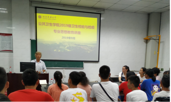 讲座会上,专业负责人谢惠波教授采用幽默风趣的语言,结合国家卫生检验与检疫专业质量标准以及生活中的实例为同学们详细介绍了专业设置、培养目标、专业要求以及就业前景,并鼓励引导同学们在大学生活中应该德智体美劳全面发展。