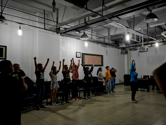 活动中,杨老师带领同学们打响指,根据打响次数,让同学们体会“志存高远”与“脚踏实地”;让同学们通过有意识的呼吸,放松身体,并且运用知米APP高效背单词;让同学们通过活动关节、拉伸肌肉,在拉伸过程中感受拉伸带来的痛苦,在上升时身体的放松中释放压力。