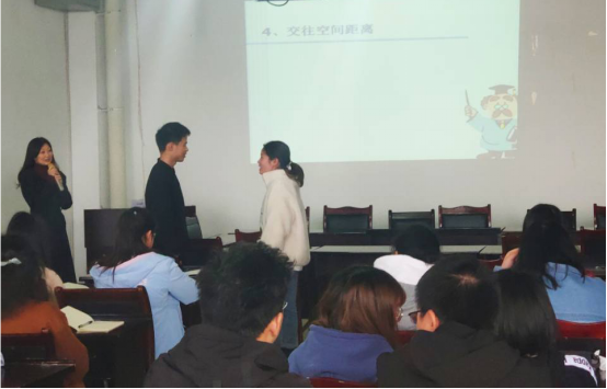 培训中,彭丽冰老师从沟通的面部表情、姿态、手势、空间距离和声音等五个方面,通过图片、真人活动等形式,着重介绍了沟通中的非语言礼仪,同时也向干部同学们介绍了在沟通中出现情绪爆发时的解决办法,引导干部同学们在日常的学习生活中运用社交沟通礼仪知识,减少沟通矛盾,帮助同学们处理好与老师、同学的人际关系,使同学们在大学中得到全面发展。