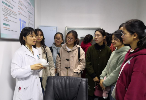 现场教学中,附属医院临床营养科汪敏主任介绍了临床营养科的发展历程、工作职责、日常工作和人员设置并带领同学参观了医疗膳食制备间和肠内营养制剂配置室,让同学们了解临床营养工作环境和日常内容;随后现场教学来到医院体检中心的人体体质分析室,现场进行了教师和同学的体质测试,汪敏主任结合人体体质分析报告解读了营养在健康管理中的重要作用;最后同学们来到临床营养门诊,了解营养门诊的流程和形式,并对营养工作内容进行了探讨和交流。汪敏主任强调了营养在当前疾病治疗和健康促进中的积极作用,鼓励同学们不负韶华,做好学业规划,找准自身定位,积极主动学习,提升专业素质,为健康中国贡献一己之力。