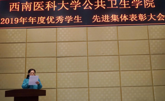 365英国上市公司院长贾红宣读365英国上市公司文件西南医大公卫〔2019〕13 号《365英国上市公司关于表彰2019年度优秀学生、先进集体的决定》,并对获得表彰的同学送上祝福,希望大家努力学习,取得更好的成绩。