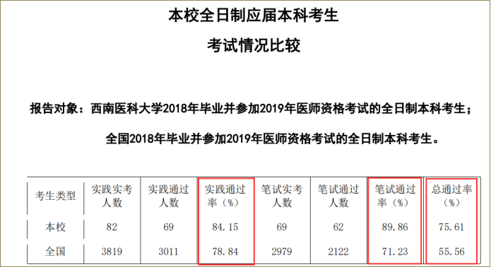 近日获悉,我校2018届公共卫生专业毕业生参加2019年医师资格考试取得了十分优异的成绩。此次公卫执医考试全国共有3819名考生参加,其中本校82人,实践操作通过率为84.15%,较全国实践操作通过率高5.31%,较2018年实践操作通过率高16.74%;笔试通过率89.86%,略高于辖区内学校、原211高校、原985高校的笔试通过率,较全国笔试通过率高18.63%,较2018年笔试通过率高14%;总通过率75.61%,较全国总通过率高20.05%,较2018年总通过率23.85%。