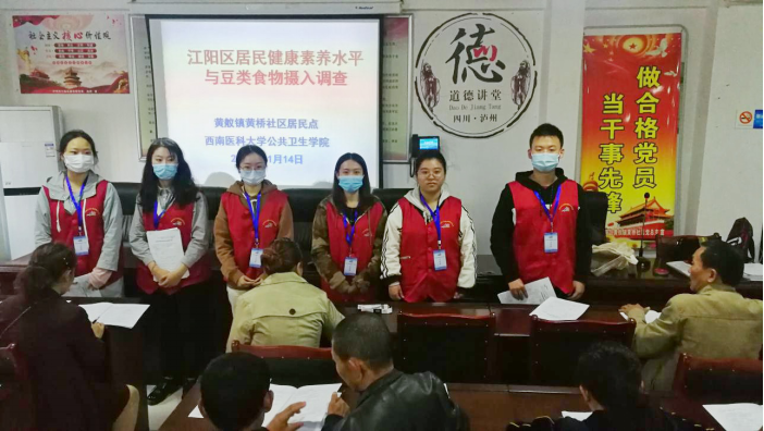 为提高居民防疫能力和健康素养,365英国上市公司携手泸州市江阳区卫生健康委员会,开展了“健康城市建设 我参与”活动。活动以学院2019级预防本科陈美七同学获得的省级大学生创新创业项目“新冠肺炎疫情对泸州市居民健康素养的影响调查”为依托,对居民展开健康调查的同时进行健康教育宣传。
