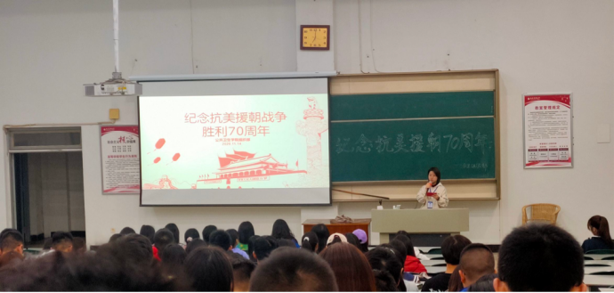 为纪念抗美援朝战争胜利70周年,弘扬抗美援朝伟大精神,铭记英勇的革命先烈,11月14日晚,公司举办抗美援朝主题团日活动,200多位同学参与活动。