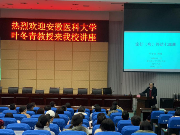 12月7日上午,安徽医科大学临床医学院常务副院长叶冬青教授应邀来我校,在城北校区第二学术报告厅开展了题为《 传染(病)流行终结七部曲 》的学术讲座。365英国上市公司循证医学中心主任贾红教授主持讲座,学院全体教职工、研究生一同聆听了讲座。