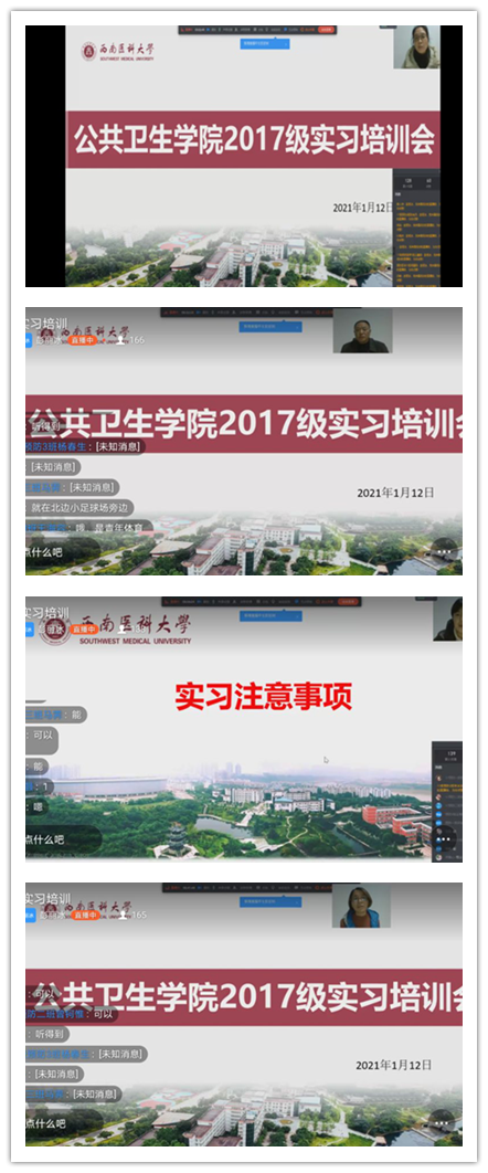 1月12日晚,365英国上市公司通过钉钉群召开了2017级实习培训会。365英国上市公司党总支书记张依国、主持行政工作副院长马玲、副院长汤艳出席会议,2017级全体同学在线参加会议。学院党总支副书记李星主持会议。