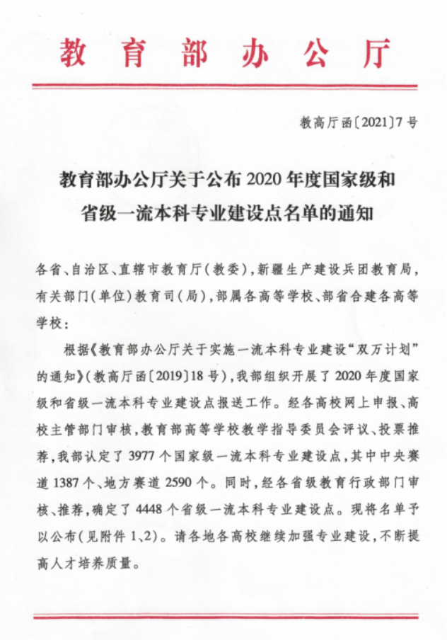 据悉,一流本科专业建设“双万计划”是教育部全面贯彻落实全国教育大会和新时代全国高校本科教育工作会议精神,推动新工科、新医科、新农科、新文科建设,做强一流本科、建设一流专业、培养一流人才,全面振兴本科教育,提高高校人才培养能力,实现高等教育内涵式发展的重要举措。