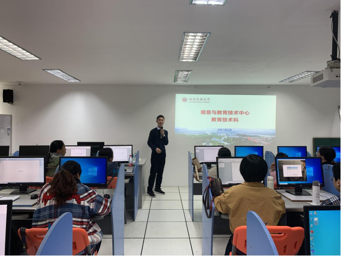 培训会上,教育技术科副科长王静首先介绍了信息与教育技术中心教育技术科的基本情况;随后,韩淑珍为大家讲解PPT制作的标准和基本要求,余红莲从色彩和主题两个方面讲解了PPT制作配色要求,孙洪艳针对PPT课件制作过程中视频制作进行讲解;最后,老师们针对教学PPT课件制作中设计、配色和视频制作中容易出现的问题进行了交流。